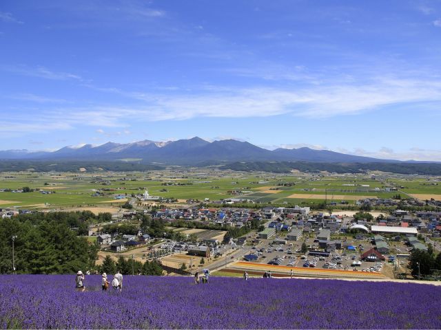 富良野の代表的な観光スポットといえばここ、「ファーム富田」。「カンパーナ六花亭」からは車で15分ほどです。1組のご夫婦が小さく始めたラベンダー栽培が実を結び、今や日本人だけでなく外国人観光客も大勢訪れるほどの人気スポットとなりました。